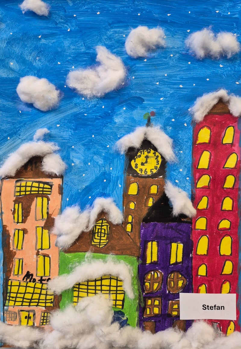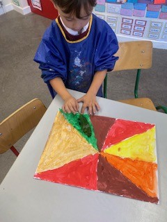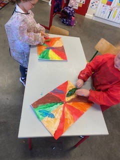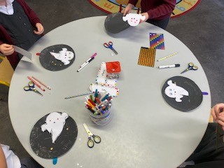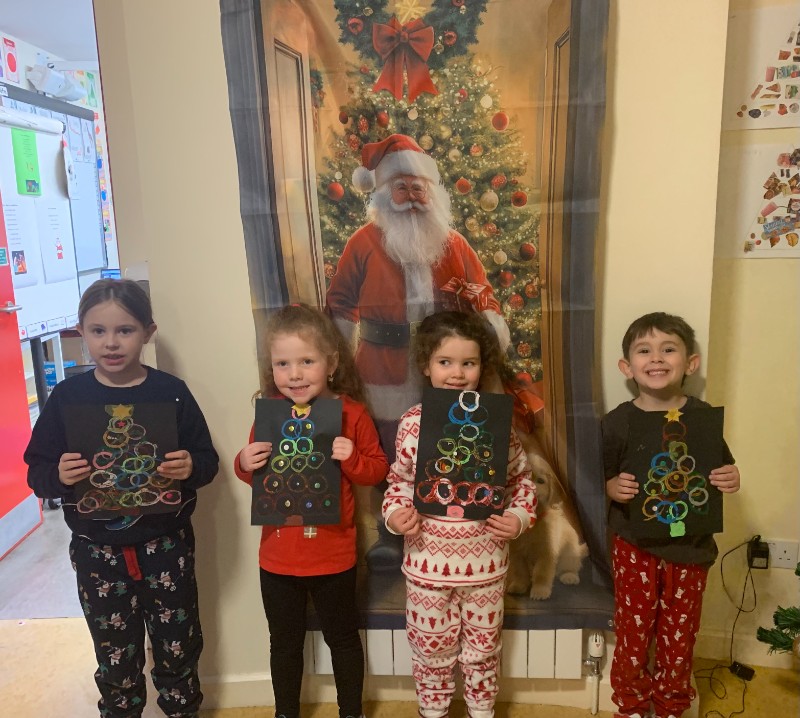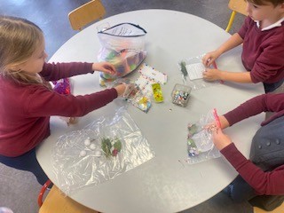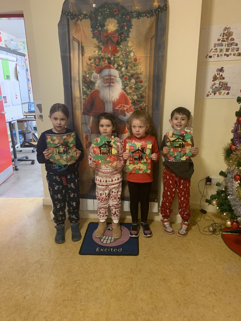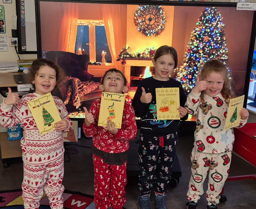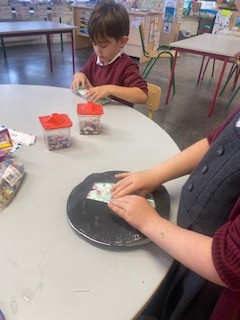 Children in Mrs Conway's room making handcrafted Christmas cards for the Social Services in Ballycroy.