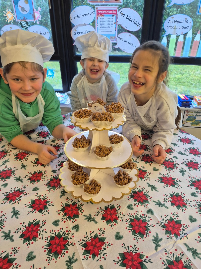 The 6th Class children (Nessa Hough, Maisy McDowall, John Lynch and Alina Hordova) and Staff in Scoil Naomh Bhríde, would like to express their most heartfelt thanks and appreciation to all the community of Ballycroy for coming to the school on Friday 4th April, to support their Cake Sale and for their very generous donations. There was a great turnout, young and old from every corner of the Parish. The event was in support of the Children's Health Foundation of Ireland in aid of sick children in Crumlin and Templestreet Hospitals. The Cake Sale was entirely the children's idea- as they are making their Confirmation on Sunday, they wanted to show that the Holy Spirit is moving and working in our community through both them as children and the Ballycroy Community as a whole. The children raised 510 euro - a substantial amount of money for a very worthwhile cause. The 6th Class children and Staff would like to thank all the children, parents and staff of the school for baking such wonderful cakes and tasty treats... It was a really enjoyable Cake Sale experience ..and a real sense of "Community Spirit" could be felt throughout the event. Well done 6th Class and everyone is very proud of your achievement!